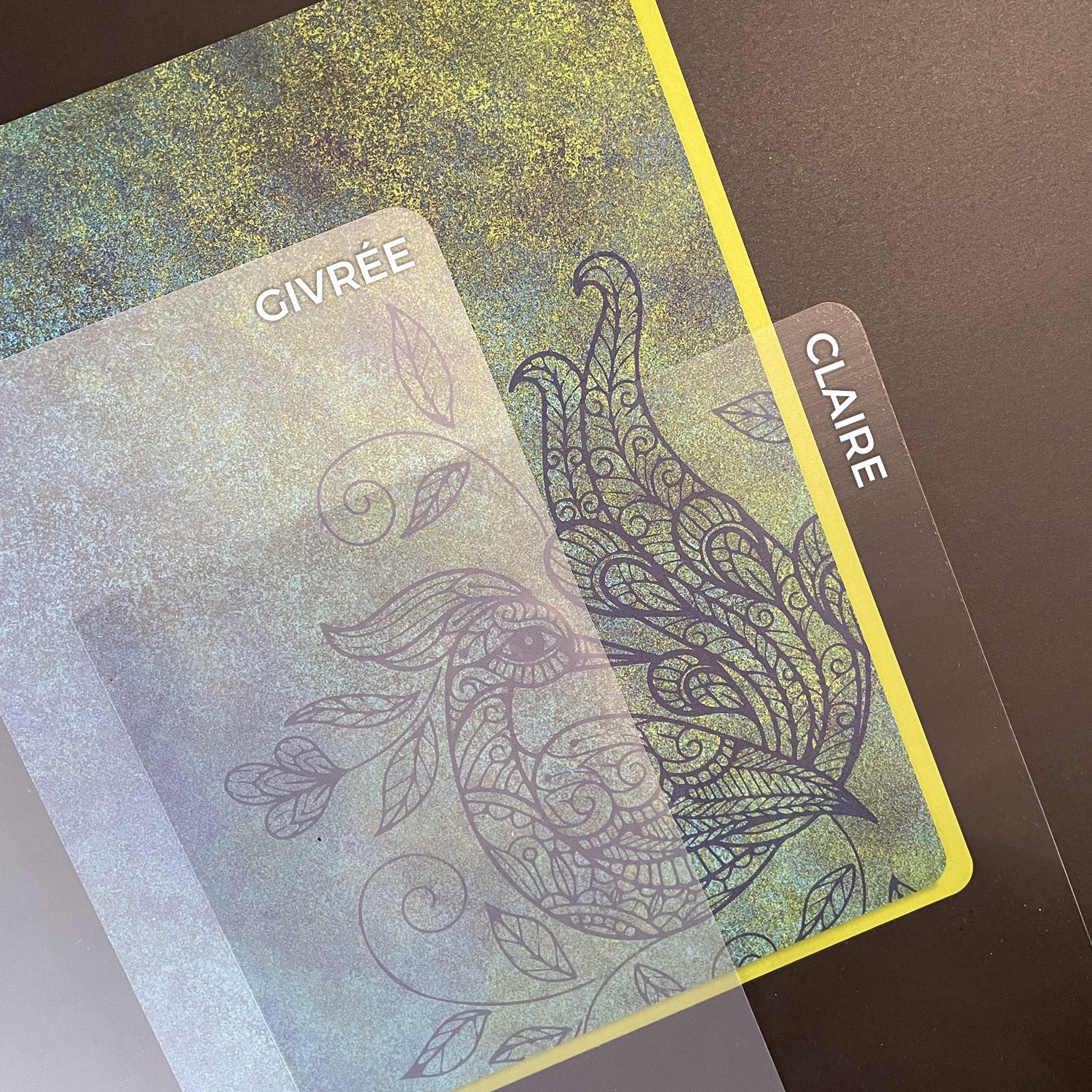 La couverture de carton plastifiée saura te charmer. Sa solidité permet de protéger tes précieuses notes et son fini satiné donne une sensation légère de tissu. Je t'offre maintenant plus de 15 modèles de couvertures différentes.
