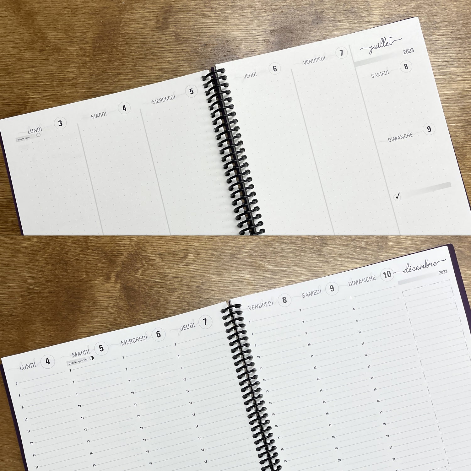Étant moi-même une amoureuse des agendas, je sais à quel point on apprécie en optimiser l’utilisation. C’est pourquoi je te propose plusieurs options pour l’adapter à TES goûts et à TES besoins.